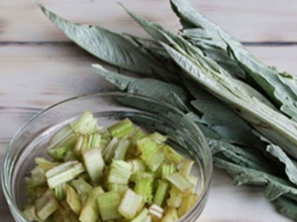 Va fatto bollire per 40 minuti eliminando prima le estremità con le foglie e togliendo la pellicola filamentosa che ricopre le coste. Le coste interne più tenere meglio tenerle protette da quelle esterne più grandi durante la cottura.