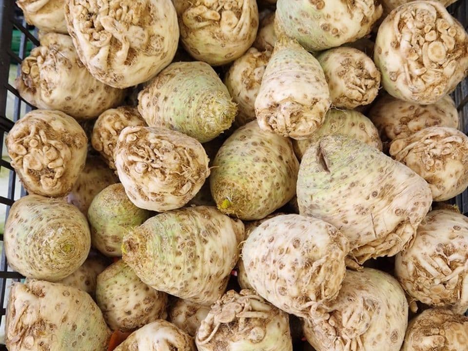 È una radice piuttosto insolita tra gli ortaggi, e spesso poco conosciuta, ha una forma sferoidale nodosa, di colore bruno-verdastro nella parte esterna e bianco internamente, con foglie di colore verde intenso.